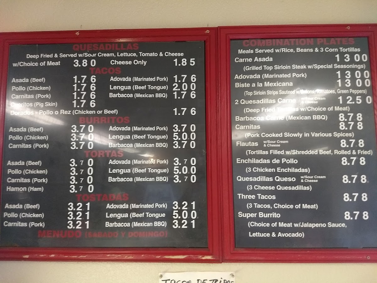 Quesadillas: Choose from enticing options like beef tongue or chicken, starting at just $4.50.